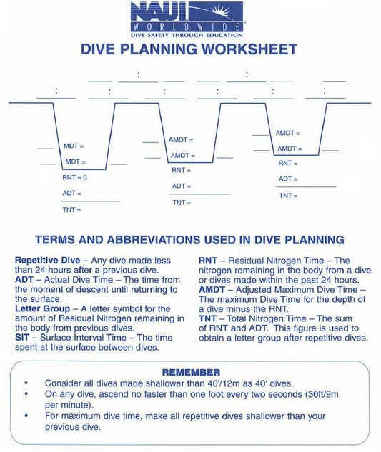 NAUI Dive Planning Table Soft Flexible material