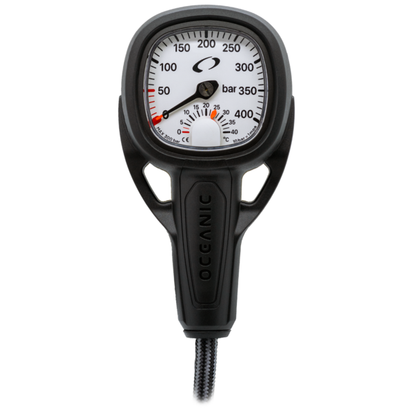 The Oceanic MAXVIEW SPG with hose is a submersible pressure gauge engineered for divers who need instant, reliable tank pressure readings at any depth. The 36-inch hose provides optimal positioning for easy viewing without interrupting your dive profile, while the high-contrast dial ensures visibility in challenging underwater lighting.